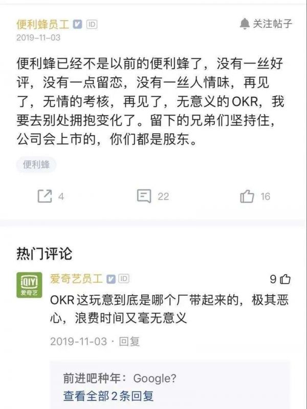 在脉脉等互联网的“职言”社群里,OKR是一个能够让互联网人搁置争议,同仇敌忾的话题。“变形的KPI”,“中华田园KPI”,都是高频出现的评论。