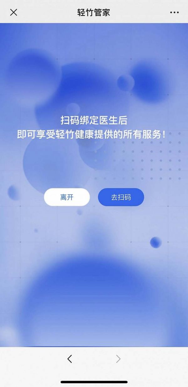 目前病人用户没有自己的客户端,而需要找到一个叫“轻竹管家”的公众号,在消息界面底部的“健康管理”或“个人中心”处,扫码绑定自己的医生。这也意味着,该功能尚未向普通用户开放,仍处于小范围测试阶段。