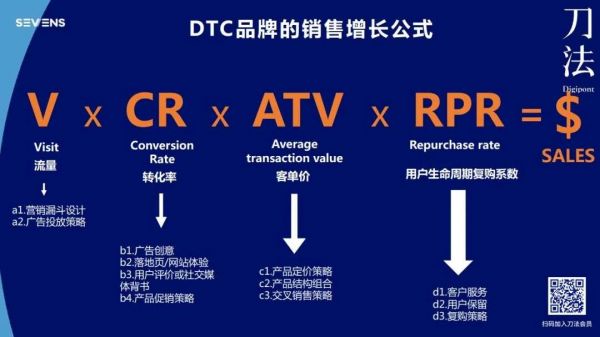 V就是流量,包括营销漏斗设计、广告投放策略;CR就是转化率,包括各个阶段的转化率,涉及到广告创意、用户评价和社交媒体、网站体验等等;ATV就是运营策略。
