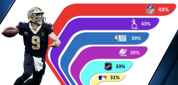 精彩激烈的赛事、广泛的受众、稳定的发展使NFL拥有了强大的品牌号召力。根据SSRS于2019年发布的民意调查,23%的美国人认为NFL是美国最受欢迎的体育赛事,是第二名MLB(11%)的两倍还多。