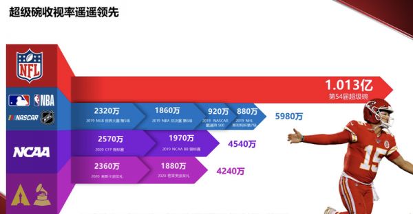 同样有趣的是,相较于其他赛事,NFL的球迷更热衷于收看比赛直播。这种情况下,转播中的广告投放比其他形式能产生更高的回报。