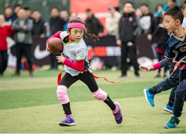 目前,NFL中国举办的腰旗橄榄球赛从小学、初中、高中、大学到社会公开组,实现年龄全覆盖,数量最多时有超过300支球队参赛。对于参与者,尤其是青少年来说,他们有机会通过腰旗橄榄球,逐渐爱上这一增强协作、勇敢和判断力的运动。
