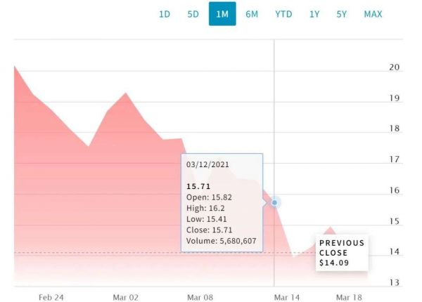 逸仙电商一个月内股价趋势 来源 / 纳斯达克官网