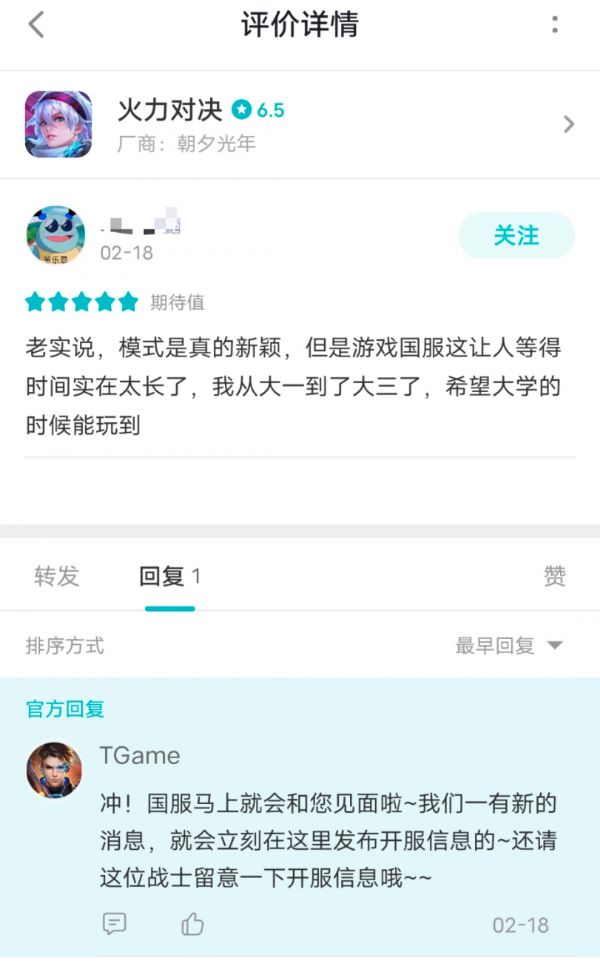 目前该游戏在国内已更名为《火力对决》,今年2月,官方表示,国服版的《火力对决》即将上线。