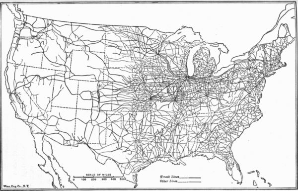1918年的美国铁路网络。/维基百科