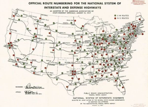 50年代的美国州际公路网络系统。/维基百科