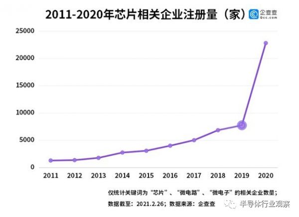 上述谈到的只是芯片设计企业,如果将晶圆厂、EDA、封测和整个芯片相关的企业注册数据统共到一起,这个数据更是惊人的。根据企查查数据显示,目前我国共有芯片相关企业6.65万家,2020年全年新注册企业2.28万家,同比大涨195%。自2021年以来,这个数据增长更为迅猛,前2月注册量已达到4350家,同比增长378%。纵观整个芯片产业链的爆发,在背后活跃的多路资本功不可没。