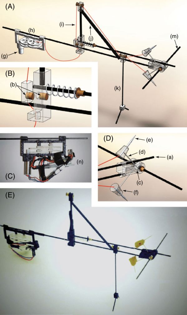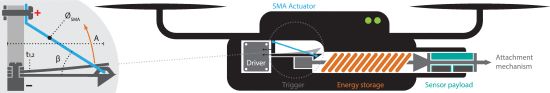 从下图看到,无人机内置了两个偏置弹簧,一个能提供偏压力,一个主要用于创造不连续的响应机制。如果需要某种特定的发射行为,我们可以通过修改两个弹簧的厚度、SMA驱动器导线的直径和A与β的值来实现。