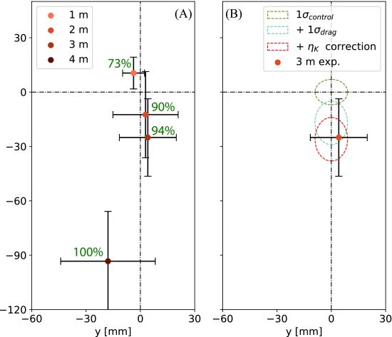 在实验过程中,研究人员对其进行了80多次的反复测试,可以发现,纵向的精度会随着距离的增加而降低,而横向的精度会受到发射时俯仰偏航和侧倾振荡的影响,但总的来说,随着目标距离增加,下降趋势明显。
