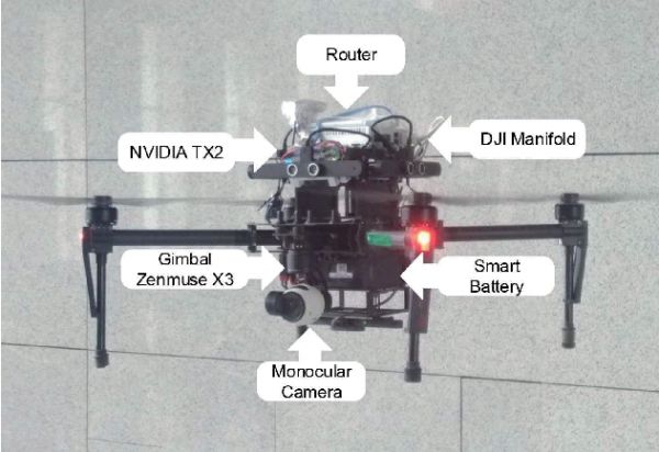 如下图所示,这个无人机使用了四旋翼配置,最大飞行时间为16分钟,重量为650g。该系统还有一个用来搭载传感器的空间,这需要在起飞前手工进行加载。