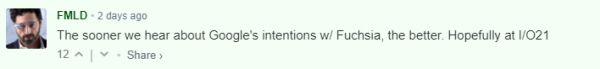 我们能越早听到谷歌对 Fuchsia 的计划越好。希望可以在 2021 年的谷歌 I/O 大会听到。