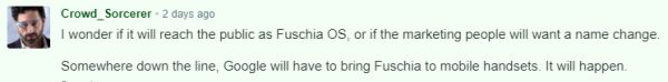 我想知道它是否会以 Fuschia OS 的名字出现在公众视野中,市场营销人员是否会要求更改名称。
