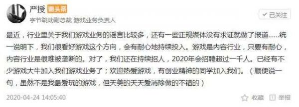 严授在那封没有过多修饰的辟谣文案中,透露了他对字节游戏业务的三个努力方向。