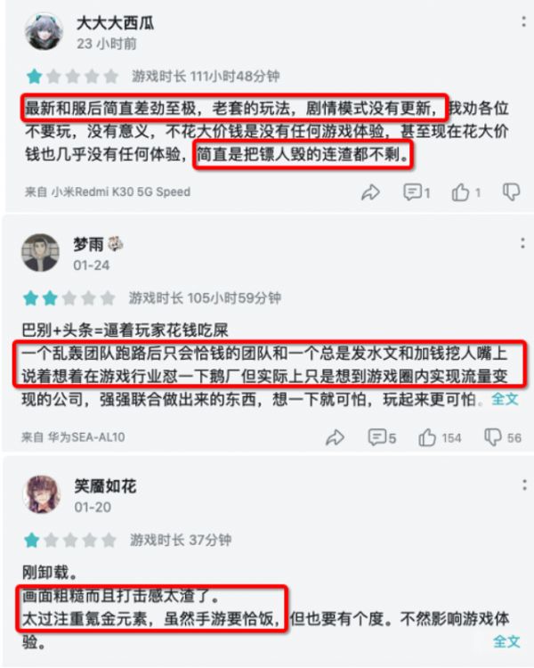 玩家评论截图,图源网络