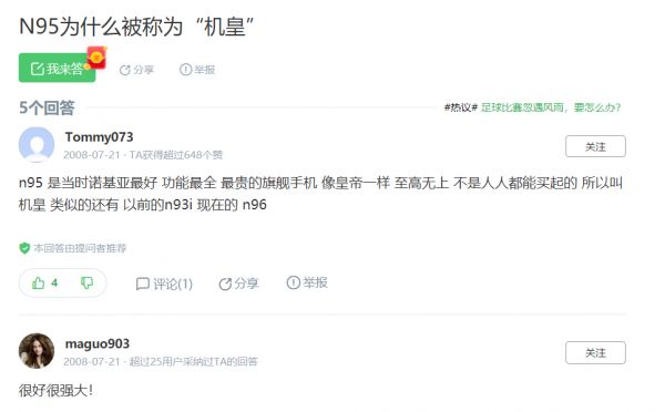 在多年以前,我们谈到“机皇”二字,背后一定要带上三个字符:N95。小雷相信,绝大多数数码爱好者对“机皇”一词的认知也是来自N95,至于为何只有N95被称为“机皇”,2008年的一条百度知道回答是如此解释: