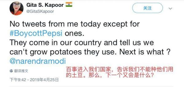 这一要求激怒了印度的农业协会,在网上,人们还发起了一场“抵制百事”的运动。