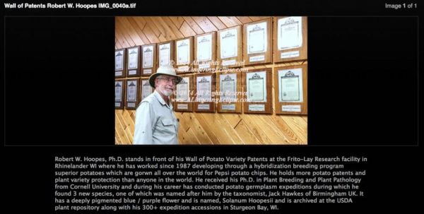相关资料显示,从1987年起,Robert W.Hoopes就在乐事薯片厂商菲多利公司(Frito-Lay)旗下的研究所工作,主要从事土豆的杂交育种研发,研发成果专门用于百事旗下的薯片产品。
