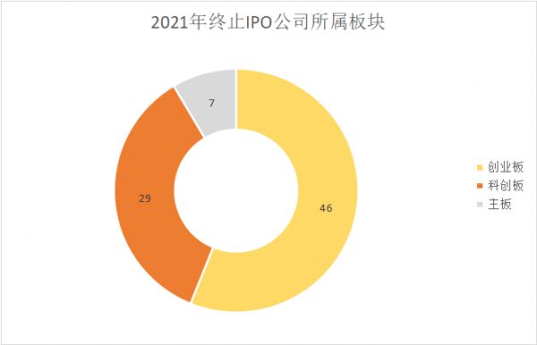 Wind数据显示,截至3月18日,2021年开年以来已经有总计82家拟IPO公司终止上市。从板块分布上看,创业板有46家,科创板29家,主板7家。这些公司已经撤回了此前递交的申请材料,短期内将无法上市。换言之,就是冲刺失败。