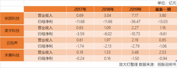 首先,它们营收规模小,但亏损巨大。这四家大部分时间净亏损远超总营收,如依图科技在2019年营收7亿已算是最高,但其当年净亏损率超500%。