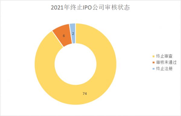 如果从审核状态上来看,则有74家公司终止了审查,基本都为主动撤回,但也有6家公司是上会后未能通过——这意味着这些公司在接受询问过程中无法对监管机构提出的问题给出合理解释。