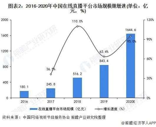 从2017年至今,直播行业的规模在持续扩大。根据前瞻产业研究院数据,2019年直播产业规模为843.4亿元,同比增长63.4%;2020年初步测算市场规模突破1600亿元。根据CNNIC发布的第47次《中国互联网络发展状况统计报告》,截止2020年12月末,中国网络直播用户规模达到6.17亿人。