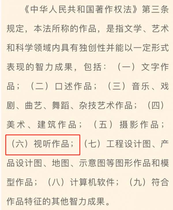 此外,此前法律中概括视频类内容的表述“电影作品和以类似摄制电影的方法创作的作品”被修改为“视听作品”,将短视频、直播等新形式的内容概括其中。