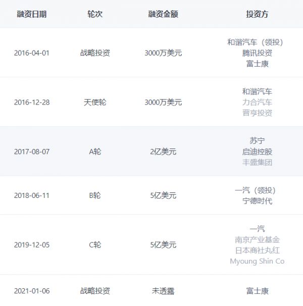 IT 桔子数据显示,拜腾汽车自 2016 年成立以来总共进行了 5 轮融资,总额高达 12.6 亿美元。