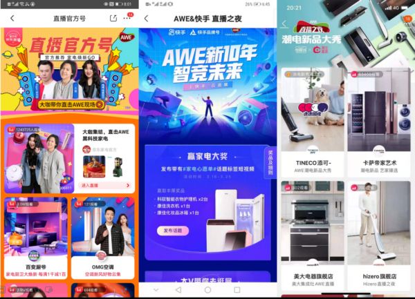 “我们不仅为AWE提供超级流量直播、打造直播专题页面,同时也邀请到快手好物首位推荐官吴召国等快手超级大V带粉丝巡展,为更多的快手用户带来关于AWE的新鲜报道,让更多的创新产品、更人性的化的场景解决方案越来越多的被消费者了解并关注。快手平台AWE项目负责人说道。