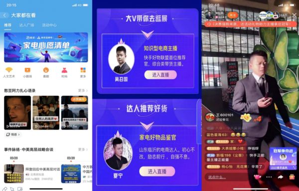 京东、快手、淘宝为AWE直播职业打造专题页面