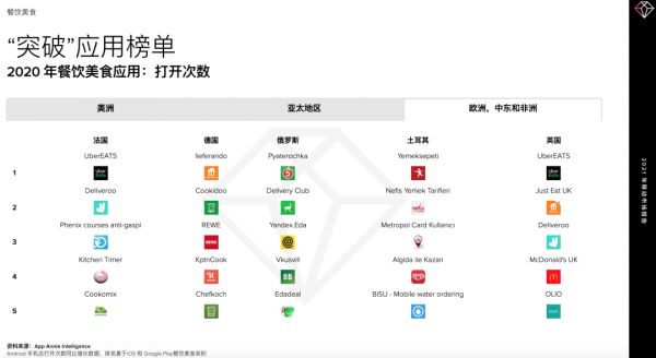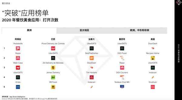 美洲、亚太地区、欧洲&中东&非洲 2020 年餐饮美食应有打开次数突破榜单