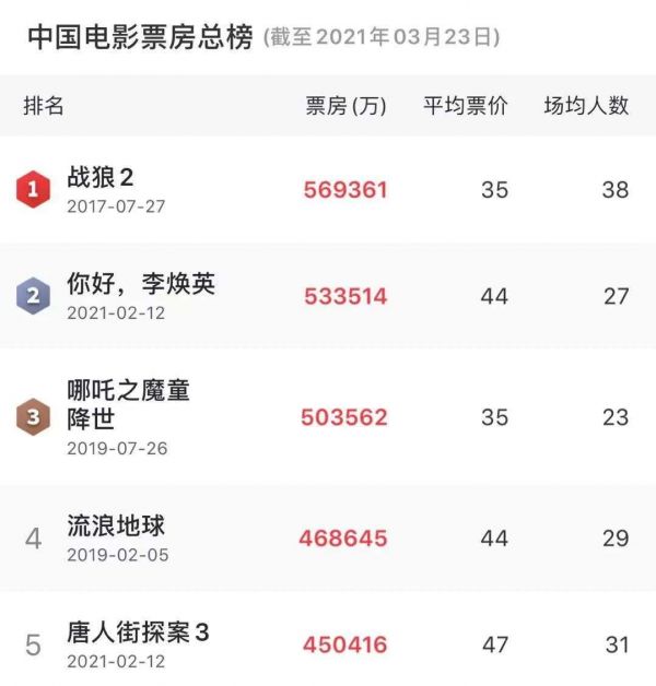 这几年北京文化堪称电影圈最炙手可热的新贵。中国电影票房榜上,前四名有三部都来自北京文化。只有一部《哪吒之魔童降世》是光线的,还是动画片。等于中国最赚钱的真人电影都是北京文化参与出品的,《李焕英》还是第一出品方。