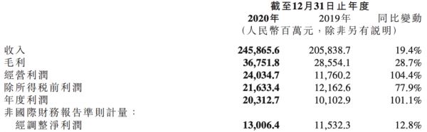 2021 年 3 月 24 日,小米集团终于发出来过去一年的成绩单。2020 年第四季度和全年业绩报告显示,2020 年,小米收入达人民币2459 亿元,同比增长 19.4%;经调整净利润人民币 130 亿元,同比增长12.8%;第四季度,小米集团总收入达人民币 705 亿元,同比增长 24.8%;经调整净利润达人民币 32 亿元,同比增长 36.7%。截止收盘,小米市值约为 5341.5 人民币。