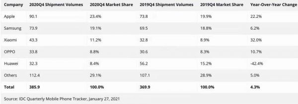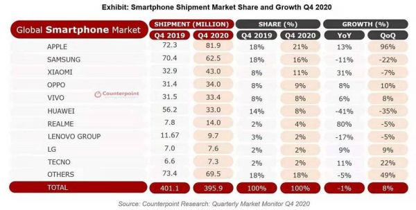 而在上一个季度,小米的出货量要比 OPPO 两个品牌加起来还要高,这主要是 realme 在 Q4 实现了 80% 的同比增长。