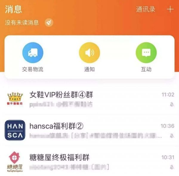 这方面主要还是流量思维的局限,微信不愿流量被淘宝获取,淘宝不愿自身用户流量转移到微信,这也促使淘宝“群聊”功能的上线,消费者对自己感兴趣的品牌商家可以入群,可以直接交流商品售卖信息,商家可以在群里面直接做营销行为,比如抽奖、红包、优惠券等。