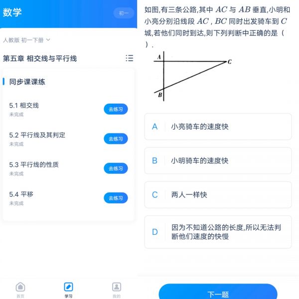 此外,学生还可以通过该App底部导航栏中的“学习”功能,采取自学的形式来做课后辅导。
