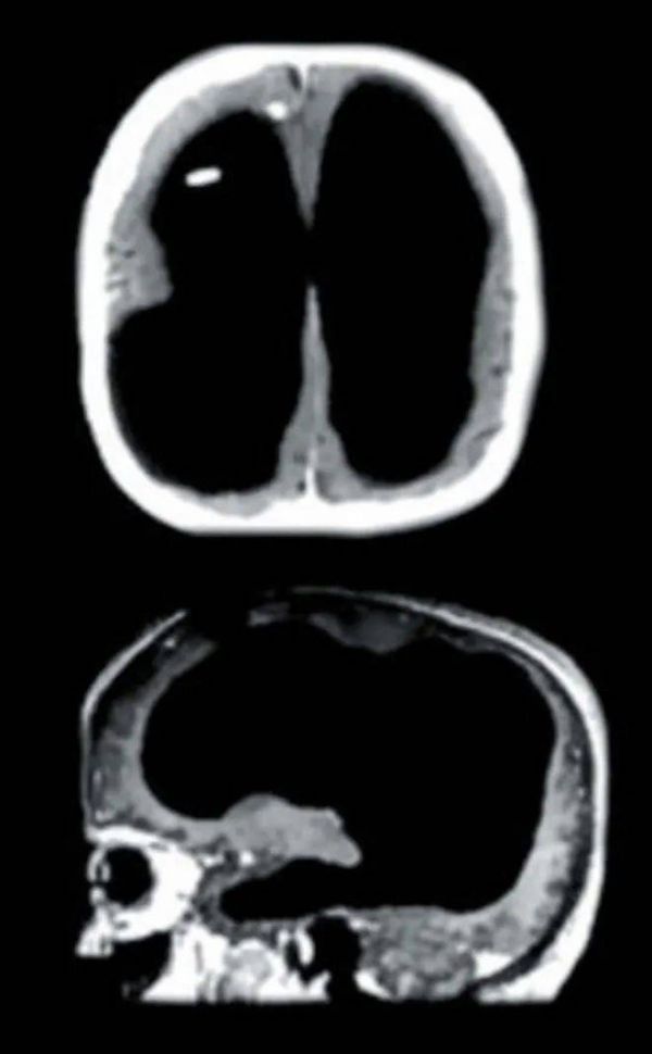 2007年,英国医学权威杂志《柳叶刀》上的病例让世人震惊。这名法国男子44岁,是一名政府公务员。当时,他因为左腿有些毛病才去看的医生。结果医生在为其进行大脑CT和核磁共振扫描后,就惊讶地发现,他的脑室内充满了脑脊液。