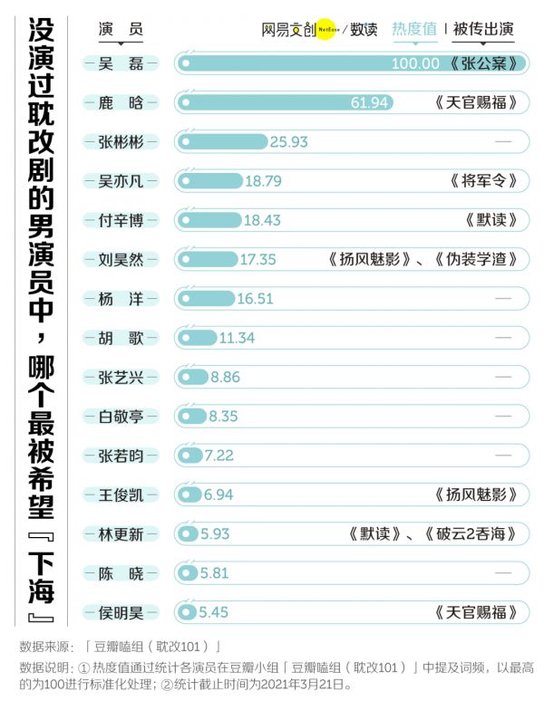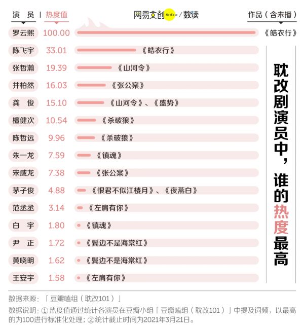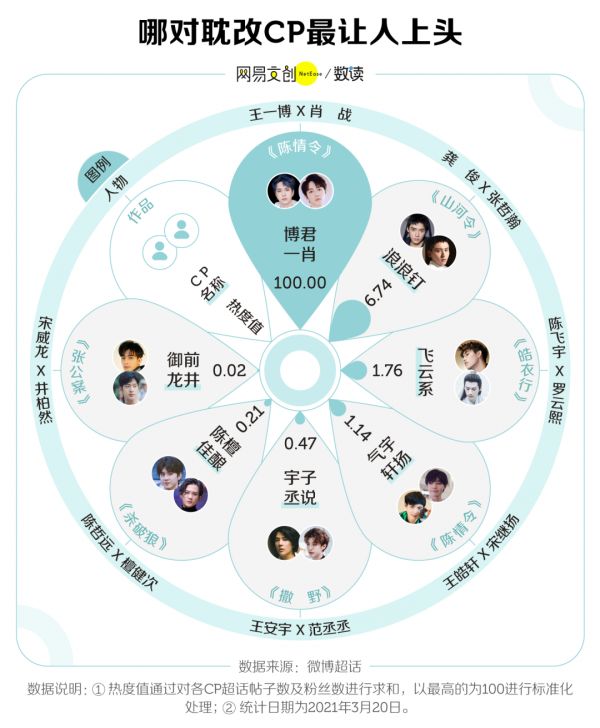 有趣的是,耽改剧演员热度榜前 15 位中,除了茅子俊,剩下的刚好是 7 部热门耽改剧的“官配 CP”。