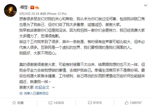 事情已经发生两天,却有愈演愈烈之势。此前传闻24日杨笠本应参与宝洁的电商直播,却因舆论争议被撤下。当晚,杨笠还是以主持人的身份出现在了直播间,期间观看超百万,不少网友晒出购买截图表示支持杨笠。直播结束后,杨笠发文回应,“感谢大家的关心,我会尽全力去做我想做的事情,去维护我自己。”
