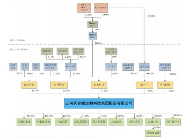 10年长跑,贝泰妮身后潜伏着红杉中国、金雨茂物两家机构的身影。其中,红杉中国2014年出手投资了贝泰妮天使轮融资,是其第一大机构股东。伴随着贝泰妮成功IPO,郭振宇家族财富也水涨船高。根据招股书,IPO前,郭振宇与其1994年生的儿子Kevin共持股约57%。以此计算,父子二人身家近400亿元。