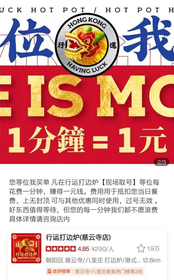 行运打边炉的营销很有意思,它把等位这种枯燥的行为,变成了一种行为货币。不仅可以吸引更多顾客,还可以让大家安心排队,保证客源不流失。