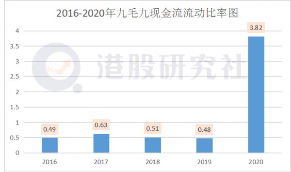 数据显示,2016-2019年,九毛九的流动比率分别为0.49、0.63、0.51、0.48。也就是说,短期负债都高于流动资产。虽然2020年,流动比率上升至3.82,但这很大一部分原因是九毛九上市后,获得了大量的资金支持,解决了当时的现金流困难,而在本次财报中,九毛九也表示,主要在采购食材、耗材及设备,餐厅翻新方面动用现金,未来随着太二门店的继续扩张,肯定还会在门店上投入大量的现金,这也考验着九毛九的现金流能力。
