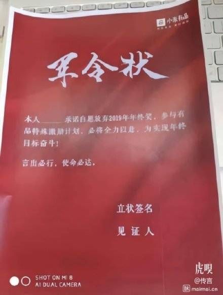 小米有品签“军令状”放弃年终奖?回应:不强求