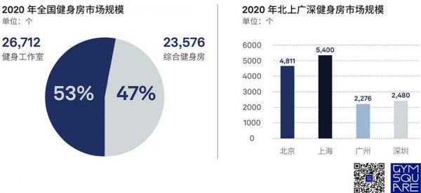 根据精练GYMSQUARE发布的《2020中国健身行业报告》,2020年中国健身房总数为50288家,复苏后的2021年,这个数据显然将快速增加。