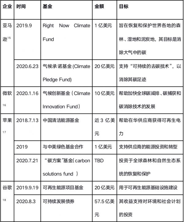 表2 国际互联网企业碳基金一览表 腾讯研究院整理