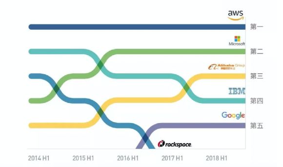 从2014年起,Rackspace的排名逐年降低,留下一道令人叹息的曲线。