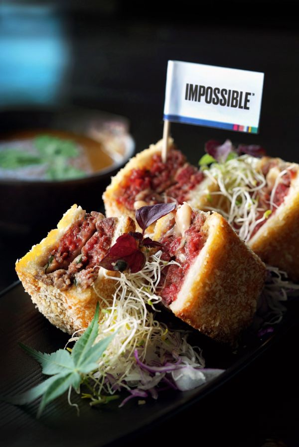 新加坡首家提供日式 Impossible 料理的餐厅 Kinki Restaurant & Bar 提供的猪排三明治。