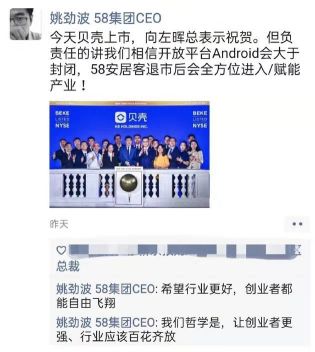 贝壳上市当天,姚劲波在朋友圈像左晖表示祝贺,但祝贺之下,暗潮涌动。姚劲波用“开放”、“自由飞翔”、“百花齐放”等词,暗指贝壳“封闭”。