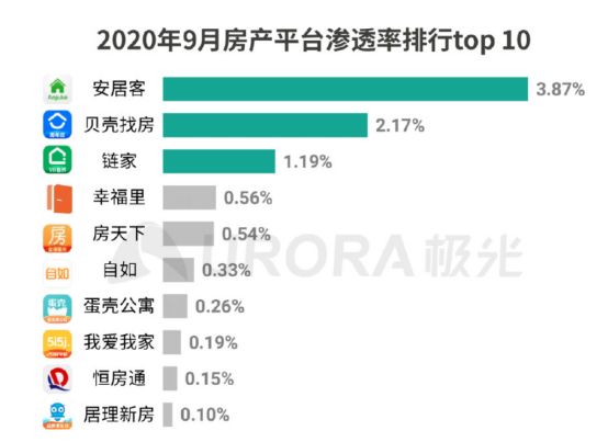 根据极光iApp的数据,2020年9月,从用户规模排名上来看,安居客以接近4%的渗透率以及超400万的日活量级,持续领先移动房产行业,成为市场中用户规模最大的在线房产平台,全网用户覆盖量是行业排名第二的贝壳找房的近2倍。