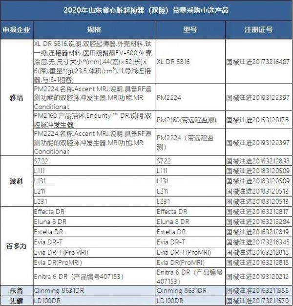2020年,安徽、青海、山东组织了省级心脏起搏器带量采购,其中山东有5个中选产品平均降价51.86%,13个带远程监测功能型、MRI兼容型双腔起搏器平均降价16.86%。青海双腔起搏器的平均降幅为13%。