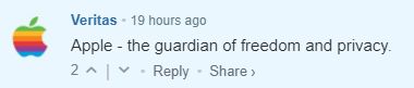 评论1:苹果——自由和隐私的守护者。